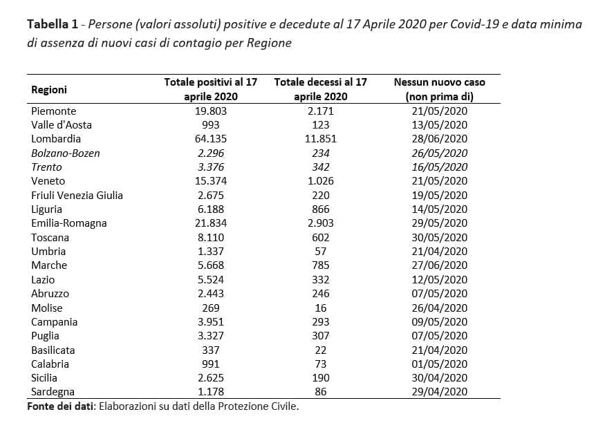 Per tutte le altre regioni l’azzeramento dei contagi potrebbe avvenire tra la terza settimana di aprile e la prima di maggio.